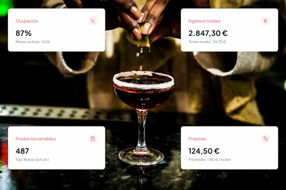 - Cobro multi-método (efectivo, tarjeta, Bizum, QR)